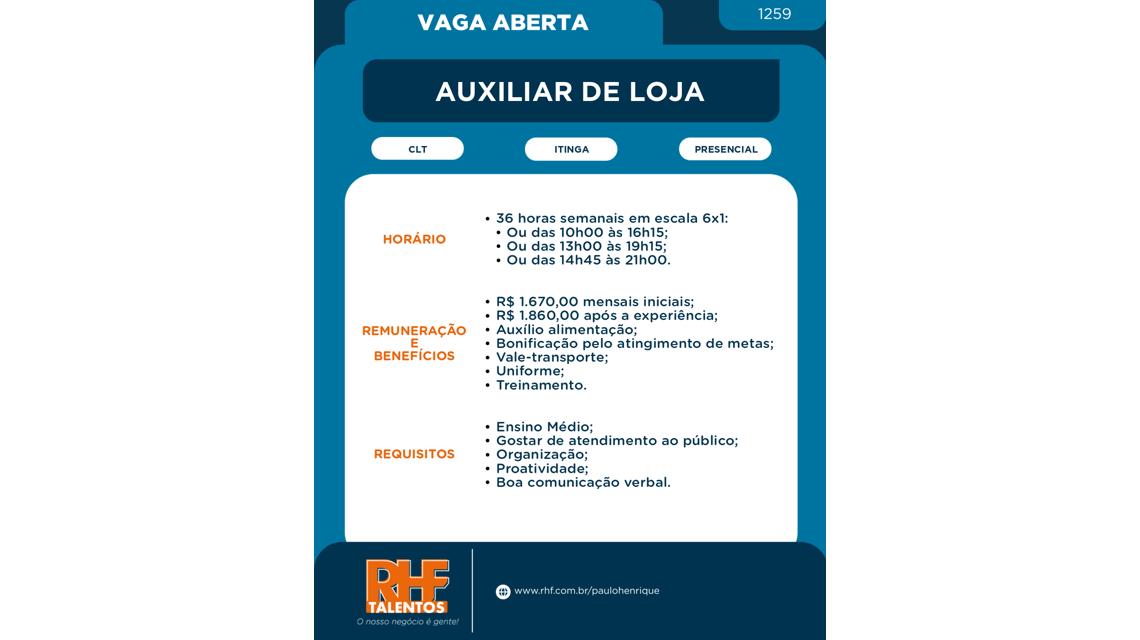 Auxiliar de Loja [1259] - Itinga - Araquari-SC