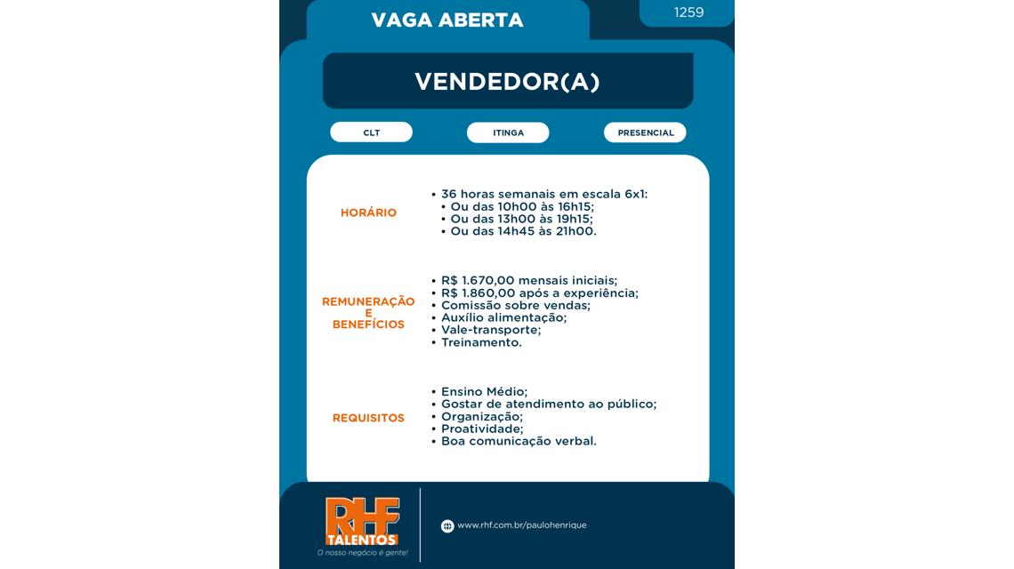 Vendedor(a) [1259] - Itinga - Araquari-SC