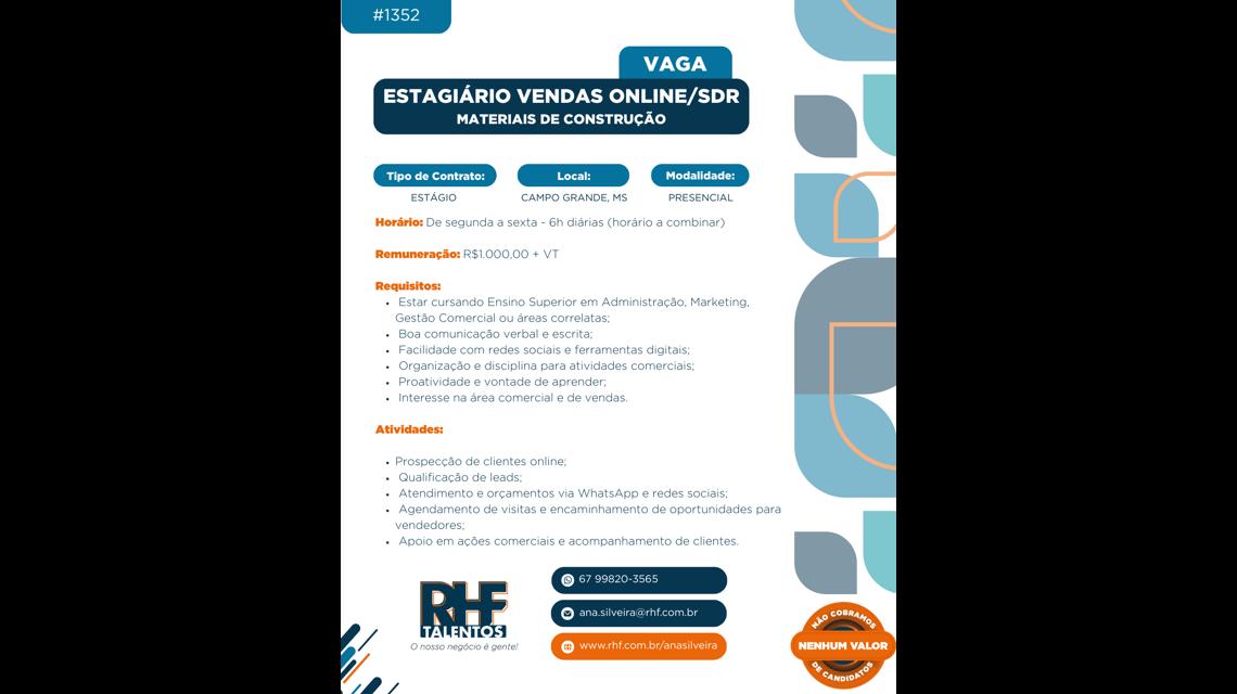 ESTAGIÁRIO VENDAS ONLINE/SDR #1352 - Materiais de Construção