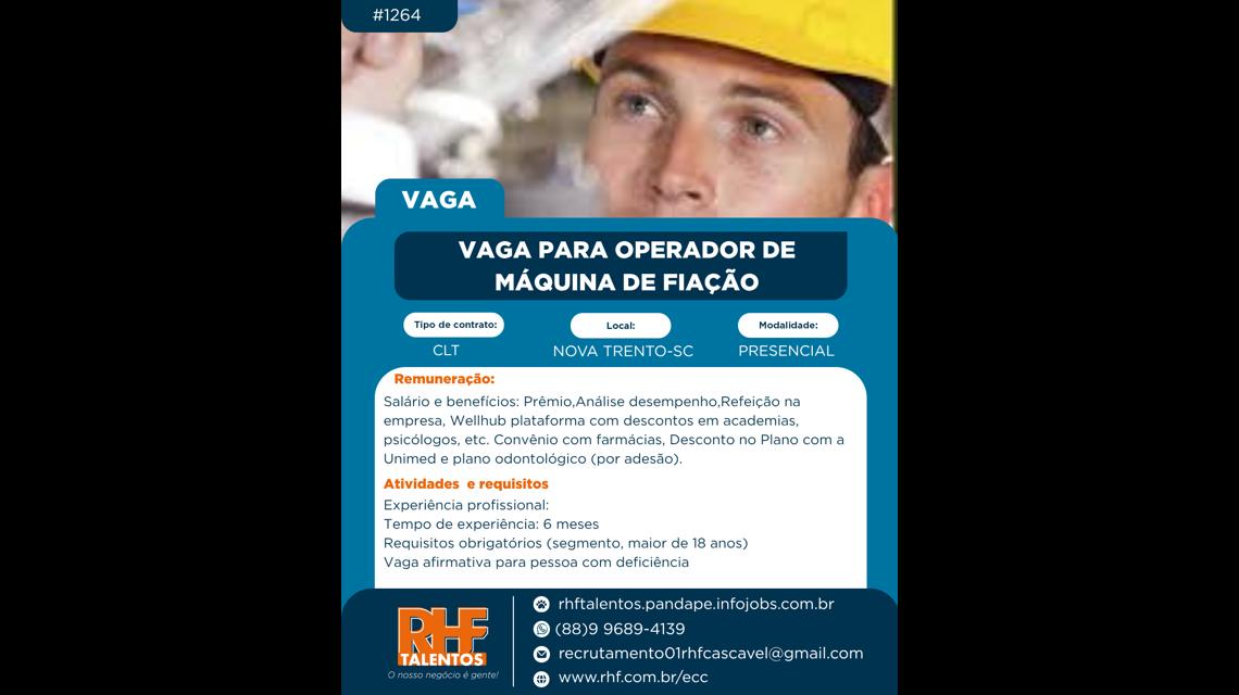 VAGA: OPERADOR DE MÁQUINAS DE FIAÇÃO